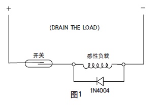 將一1N4004二極管(或與之相當的元件)如圖1所示接入電路,二極管的陰極接到電源的正端。當給負載加電壓的時候(開關閉合),二極管不導通。但是當斷開開關時,二極管就會導通,從而將負載所產生的感應電壓短路掉。所產生的感應電壓與所施加的電壓是串聯的關系。