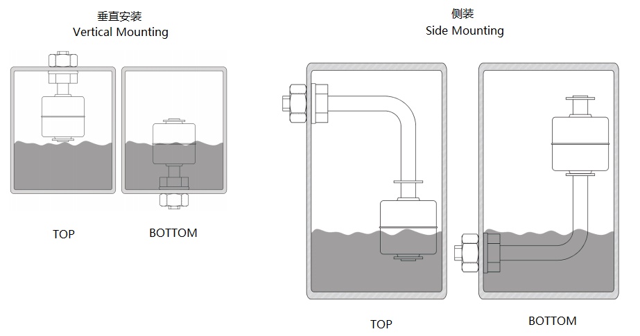 浮球式液位傳感器是由封裝在固定桿中的干簧管和封裝在浮球中的永久磁鐵組成,浮球環繞在固定桿周圍。當浮球隨液位上升或下降時,浮球產生的磁場激勵安裝在桿中的密封磁性干簧管。固定桿由非磁性金屬或堅固的工程塑料制成。